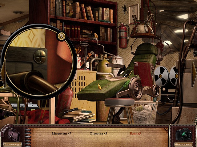 В качестве подсказки вы будете использовать снимки своего фотоаппарата. Достаточно нажать на кнопку, и на карточке отобразится искомый предмет. Чтобы получить дополнительные шпаргалки, обследуйте локацию и найдите спрятанную в ней фототехнику. Найденные объективы, штативы и кассеты с пленкой помогут вам в расследовании.